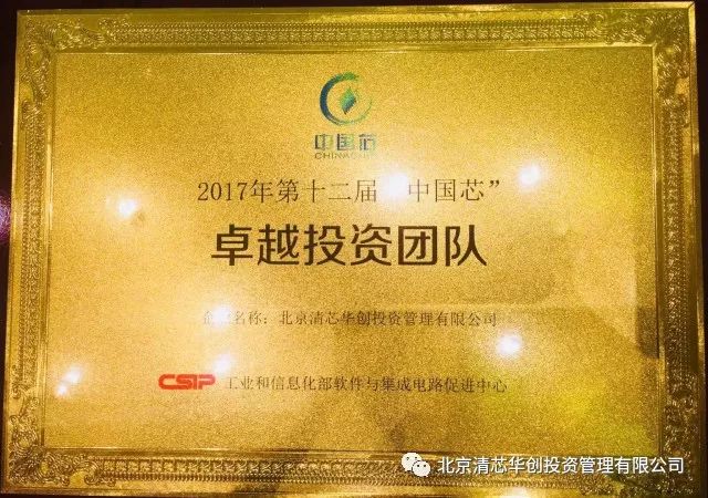 图为华创投资团队获得2017中国芯“卓越投资团队”称号