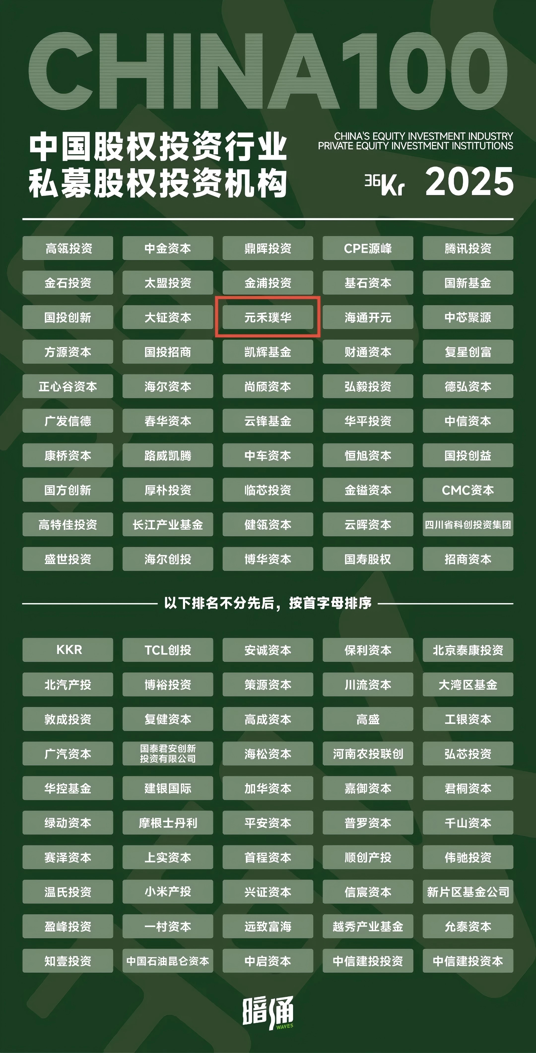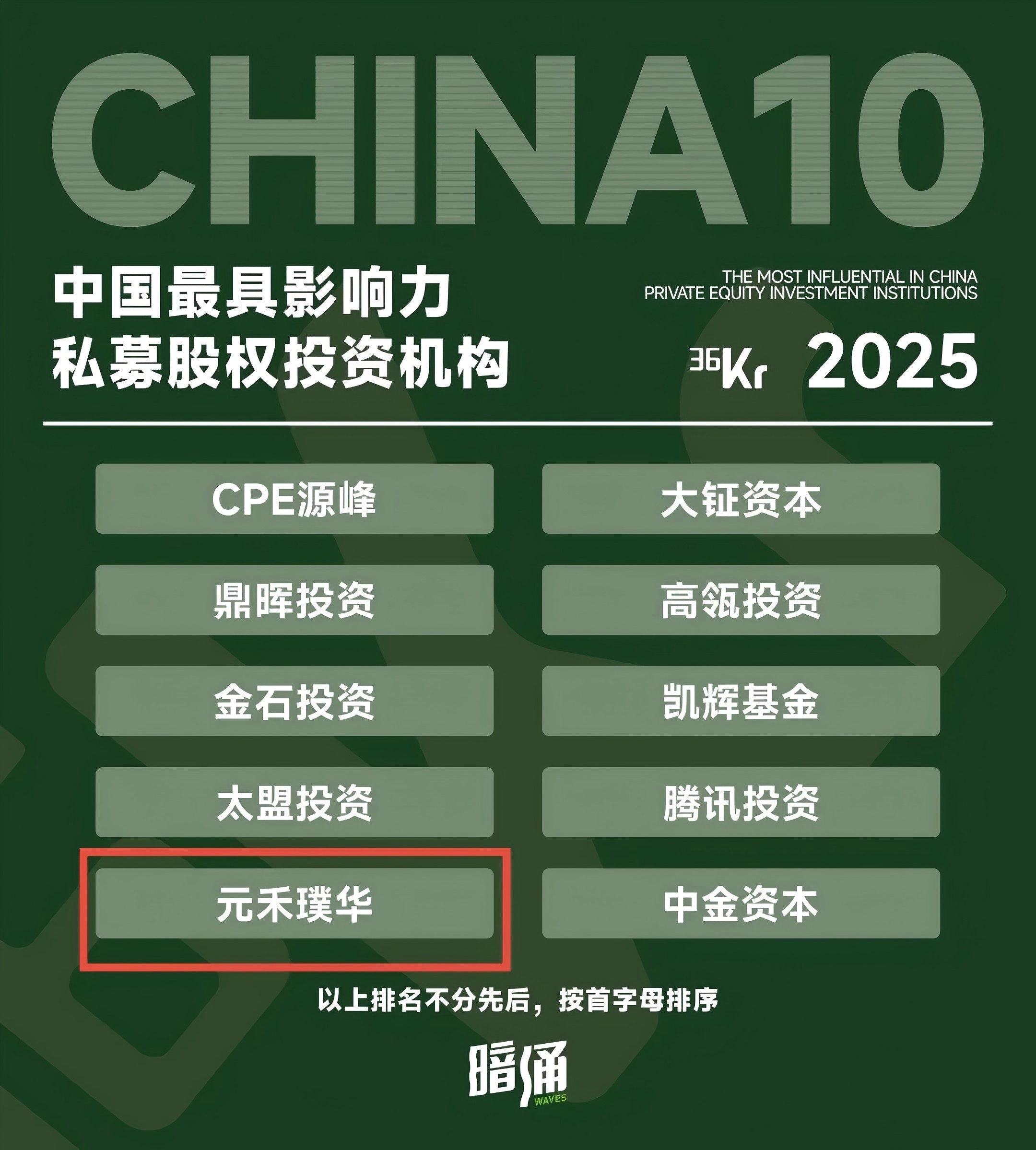 元禾璞华入围36氪2025股权投资行业年度重要榜单!