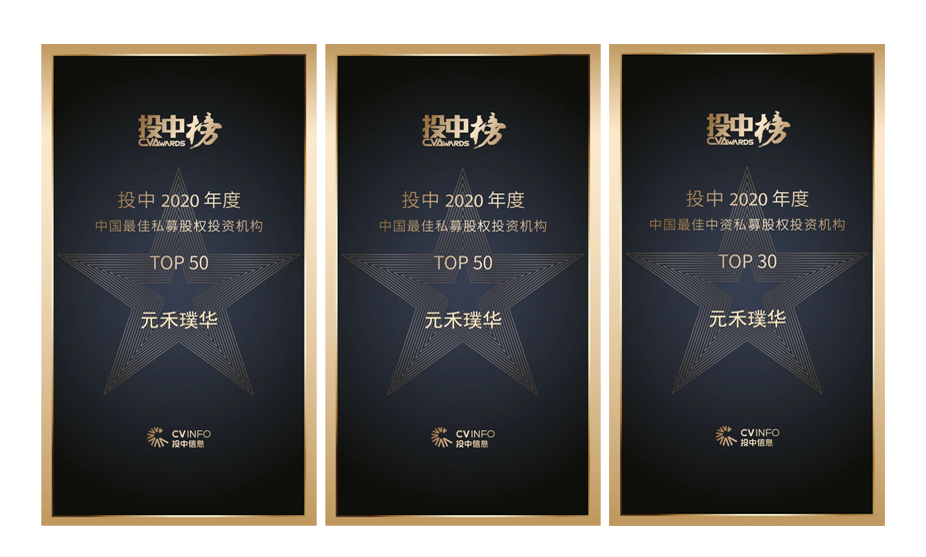 元禾璞华入围“投中2020年度榜”三项榜单