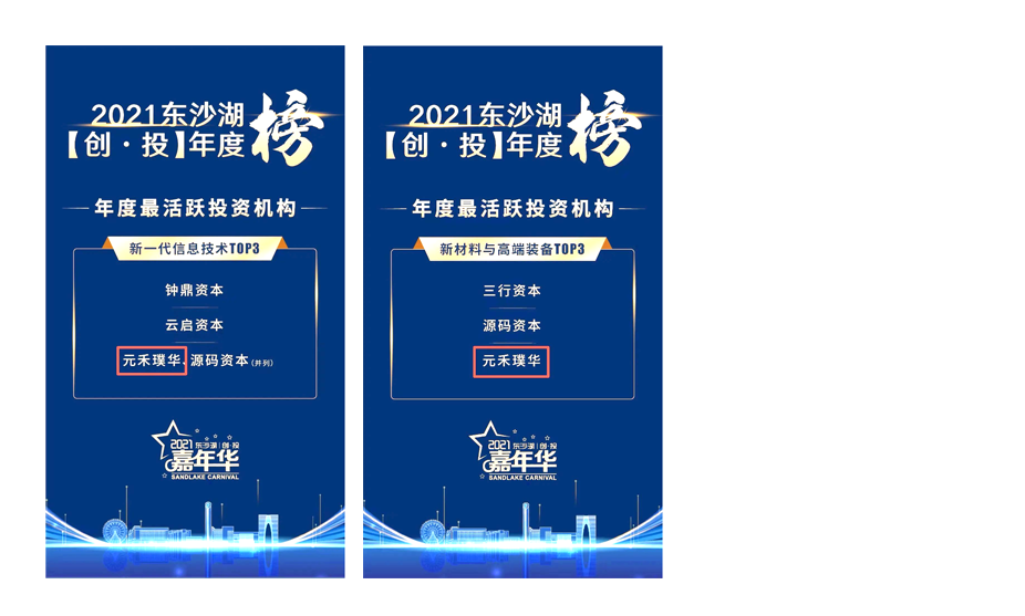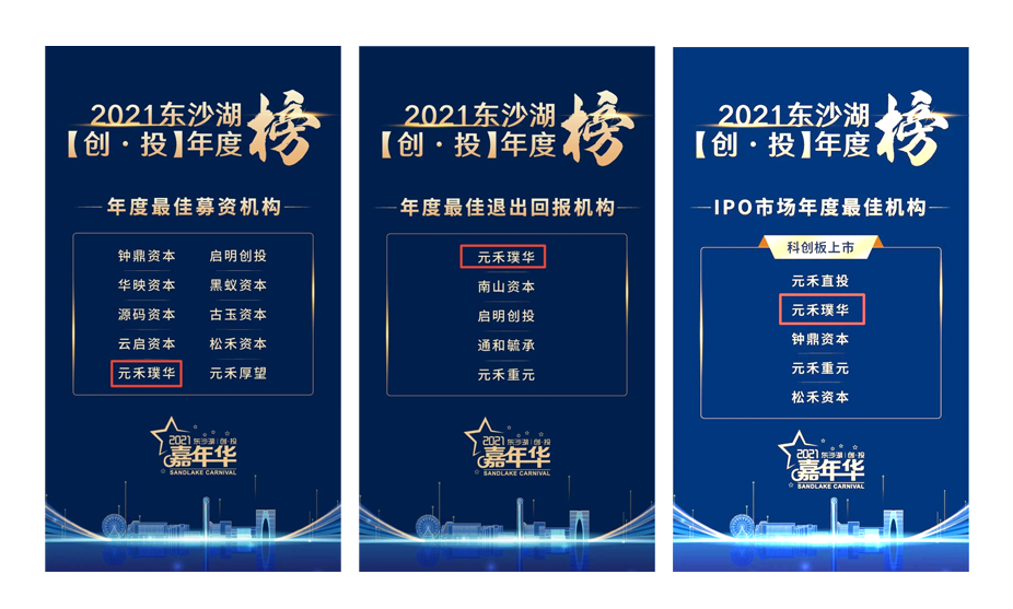 元禾璞华入围2021东沙湖创投嘉年华五项榜单